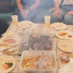 協力会役員の方々が「社員との親睦を深めたい!」と企画してくださったこのイベント。10月初旬でしたが、予想以上に暑い日で、屋外とはいえ屋根の下だったため、煙がモクモク☁